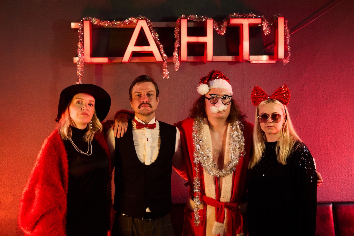 Jälleen lauletaan julki joulun kaikki puolet! Estradilla Minja Koski, Mikael Saari, Maruska Verona, Niklas Hagmark ja Matti Hussi.