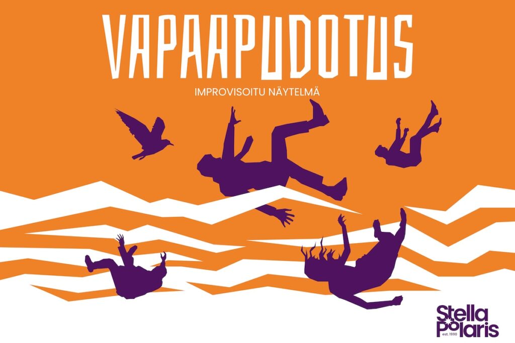 Vapaa pudotus on Stella Polariksen klassikko, joka viihdyttää vuodesta toiseen. Esityksessä ei ole käsikirjoitusta, vaan näyttelijät, muusikko ja valosuunnittelija improvisoivat kaiken yleisöltä saatujen ehdotusten pohjalta. Kukaan ei siis tiedä etukäteen, millainen tarina on syntymässä.